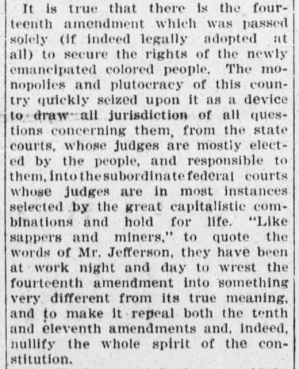 After 20 children unveiled Chatham County’s new Confederate monument before a large crowd in Pittsboro, North Carolina, on August 23, 1907, Chief Justice Walter Clark of the North Carolina Supreme Court was introduced as the guest speaker for the occasion. In his remarks, which the Raleigh Times newspaper published, Clark suggests the possibility that the 14th amendment to the United States Constitution “to secure the rights of the newly emancipated colored people” had not been adopted legally.