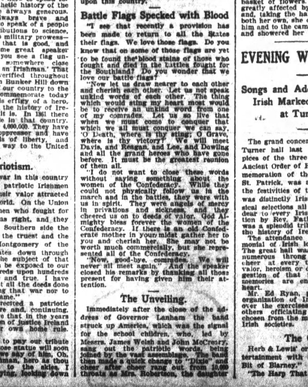 Others would say similar things. One of the speakers embraced the title “rebel” as a rebellion against oppression, calling the war a battle for liberty that was not won but lost. He made no mention of the millions of Black bodies that had been set free.