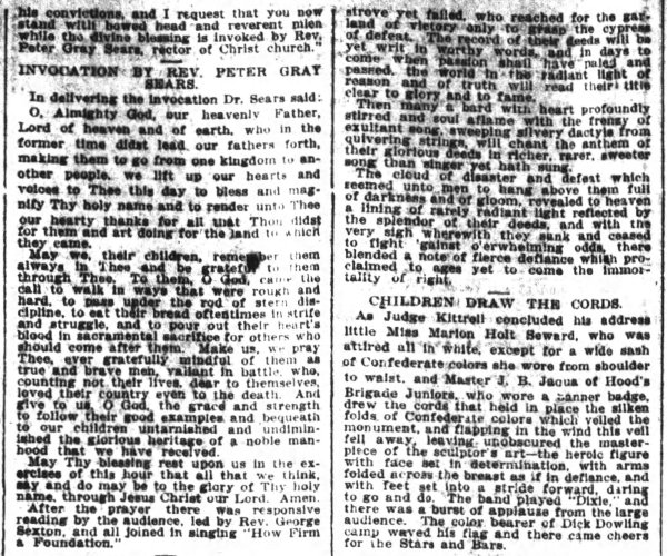 When the other monument, “The Spirit of the Confederacy,” was dedicated three years later in Houston, a different member of the clergy was invited to give the opening prayer. He was introduced by a judge who recalled: